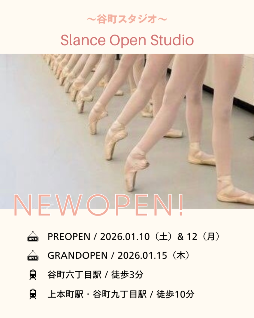 〈谷町スタジオ〉では、皆様によりご満足いただけるようクラスを増設し、バレエと心身の成長をこれまで以上に丁寧にサポートして参ります。