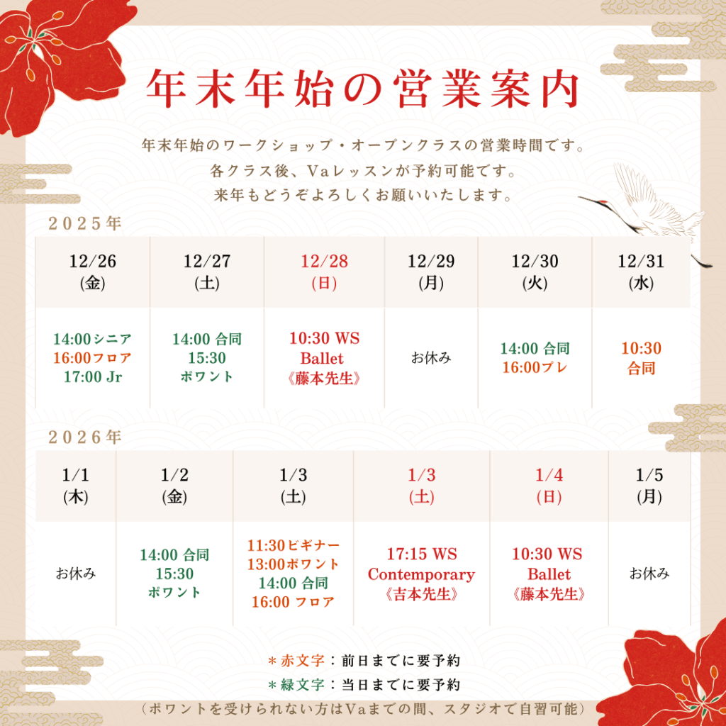 年末年始のスケジュール詳細はこちら↓