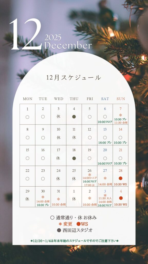 12月26日〜1月5日は年末年始の為、スケジュール が変更となりますのでご確認下さい。