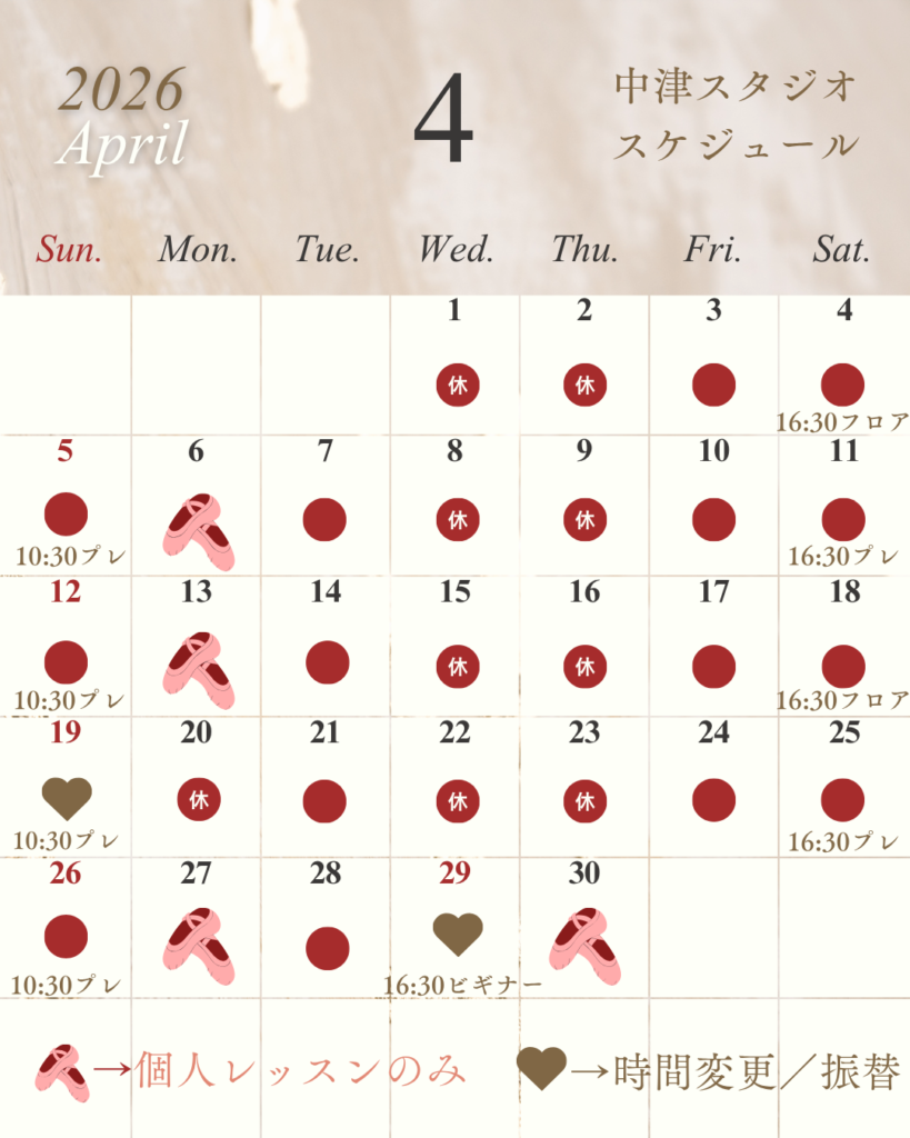 | 水 | ▽29日 (祝) | ▽ビギナー | 16:30ビギナー 18:00ポワント |